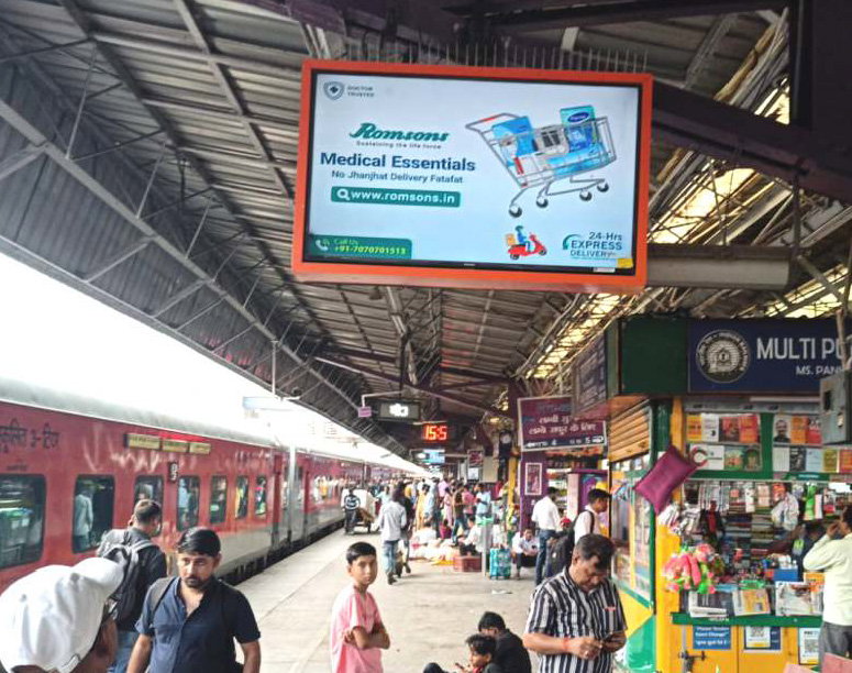 LED Screens LED screens on New Delhi Railway station Total no. of screens- 90 Footfall per day- 5 lakh Covering all platforms (1-16) 500+ trains leave daily from New Delhi railway station